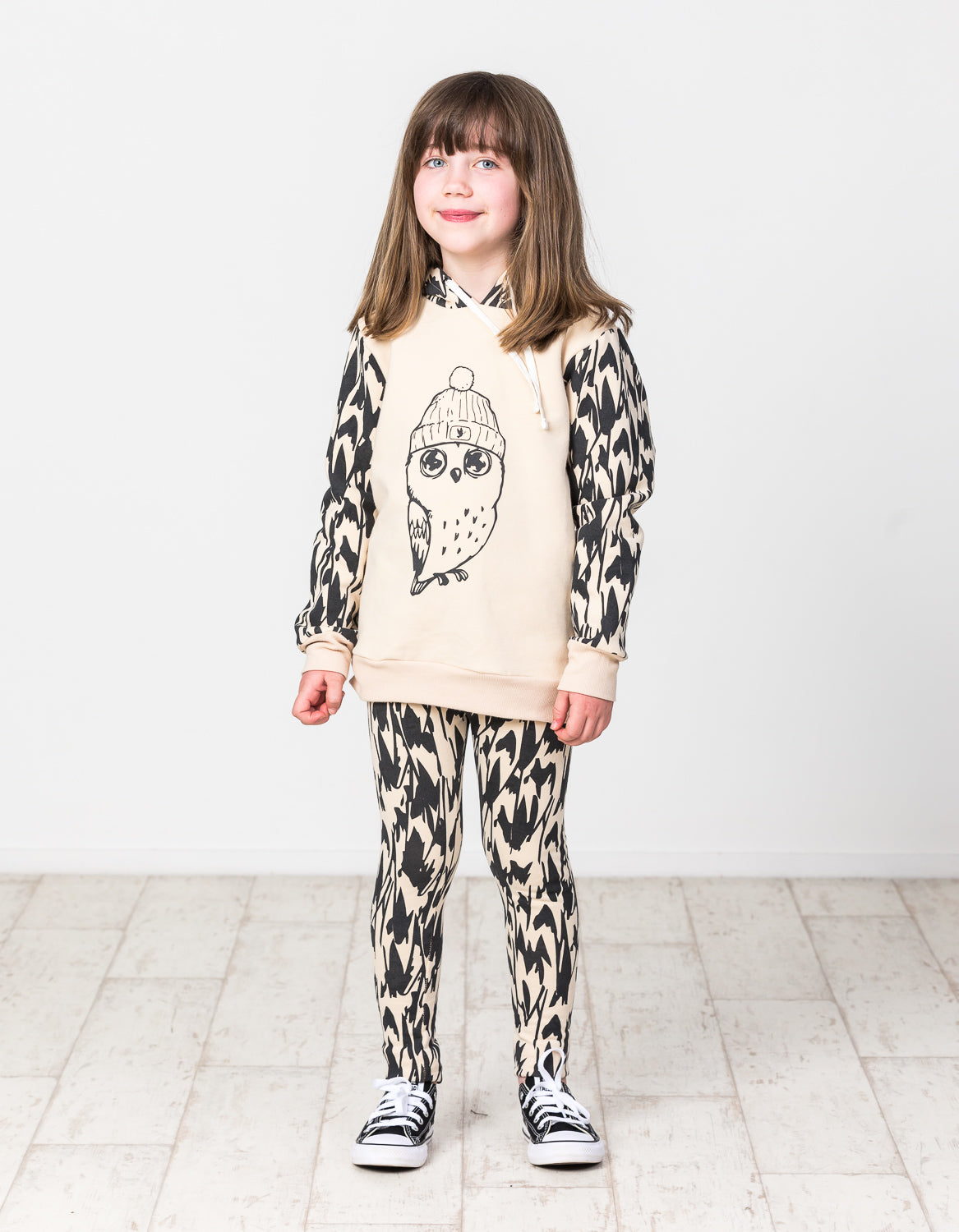 Super-snuggly brushed cotton / spandex hood with the cutest owl chest print, contrast feather print sleeves with thumbholes & hood complete with pom-pom. For those minis who love our feathered friends as much as we do!