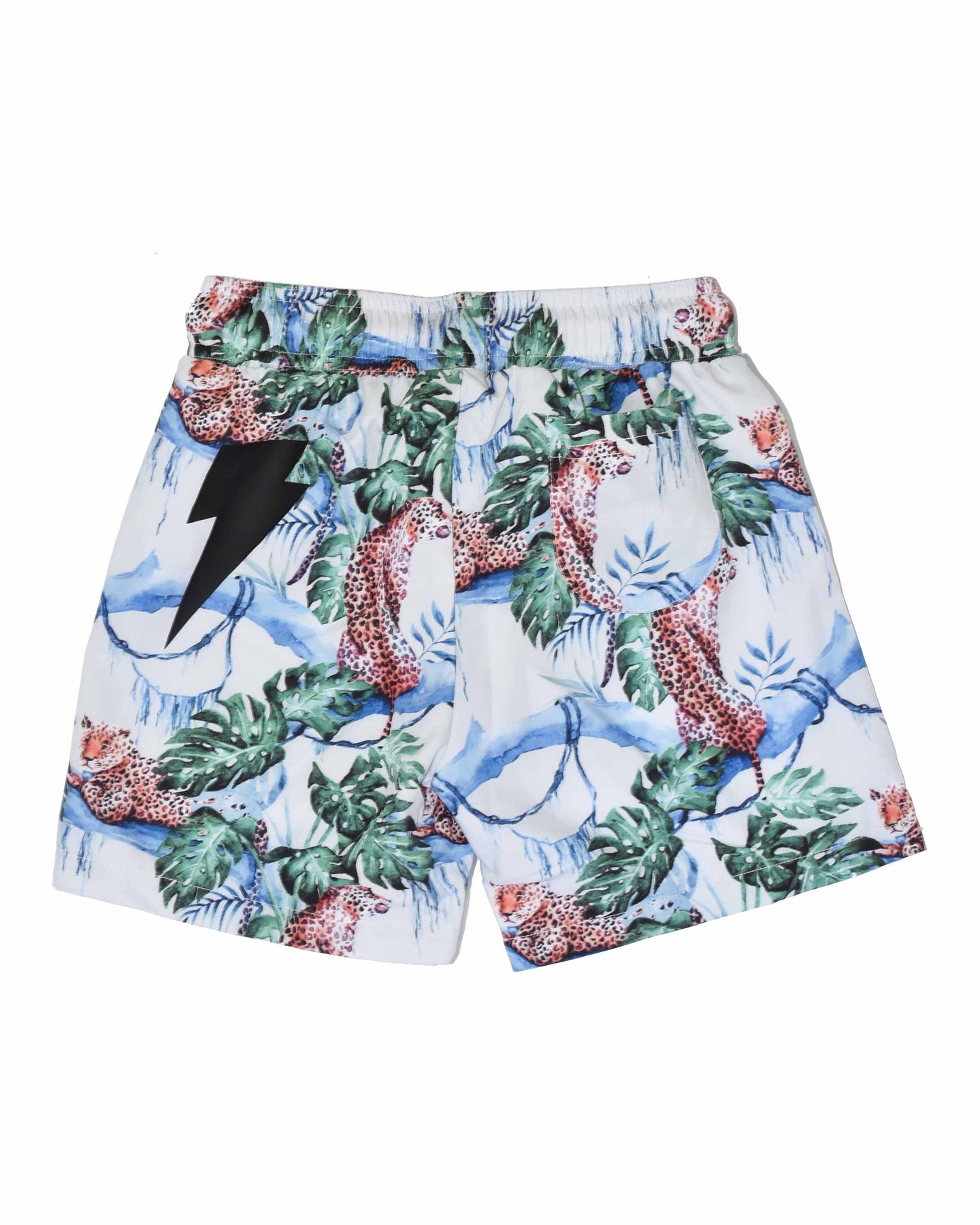 POLYESTER/SPANDEX SHORT WITH ELASTIC WAISTBAND, REAR POCKET AND ALL OVER DIGITAL JUNGLE PRINT