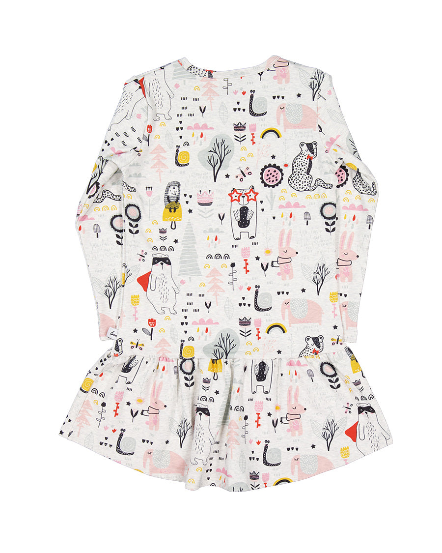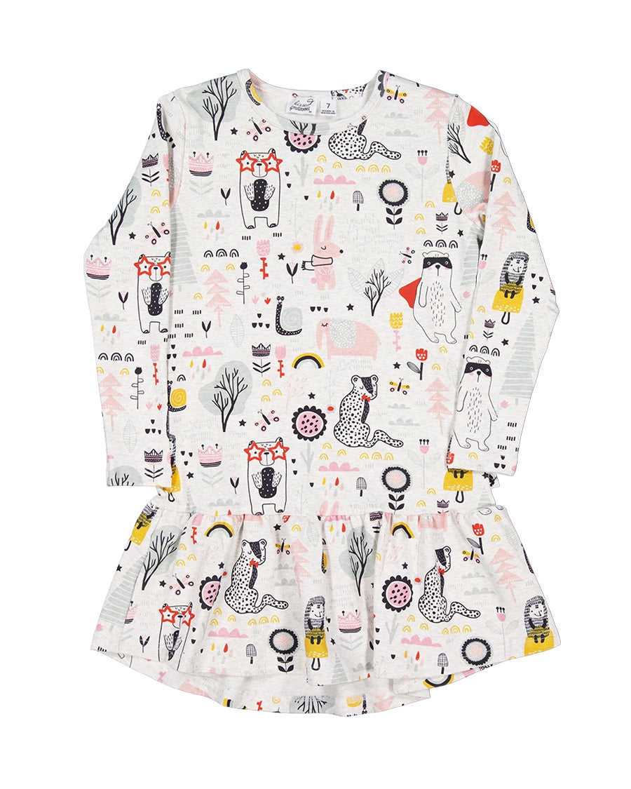 KR2436 FOREST DOODLE FRILL DRESS