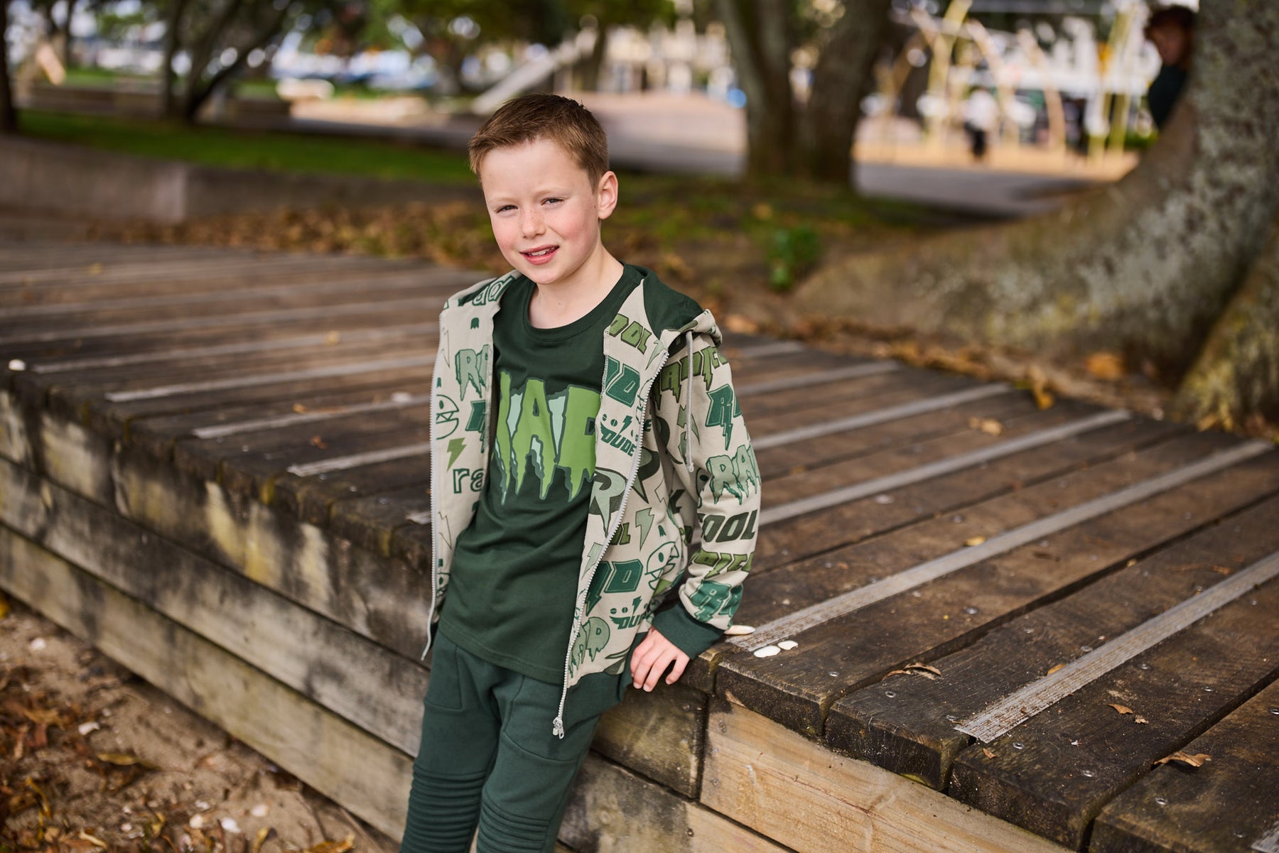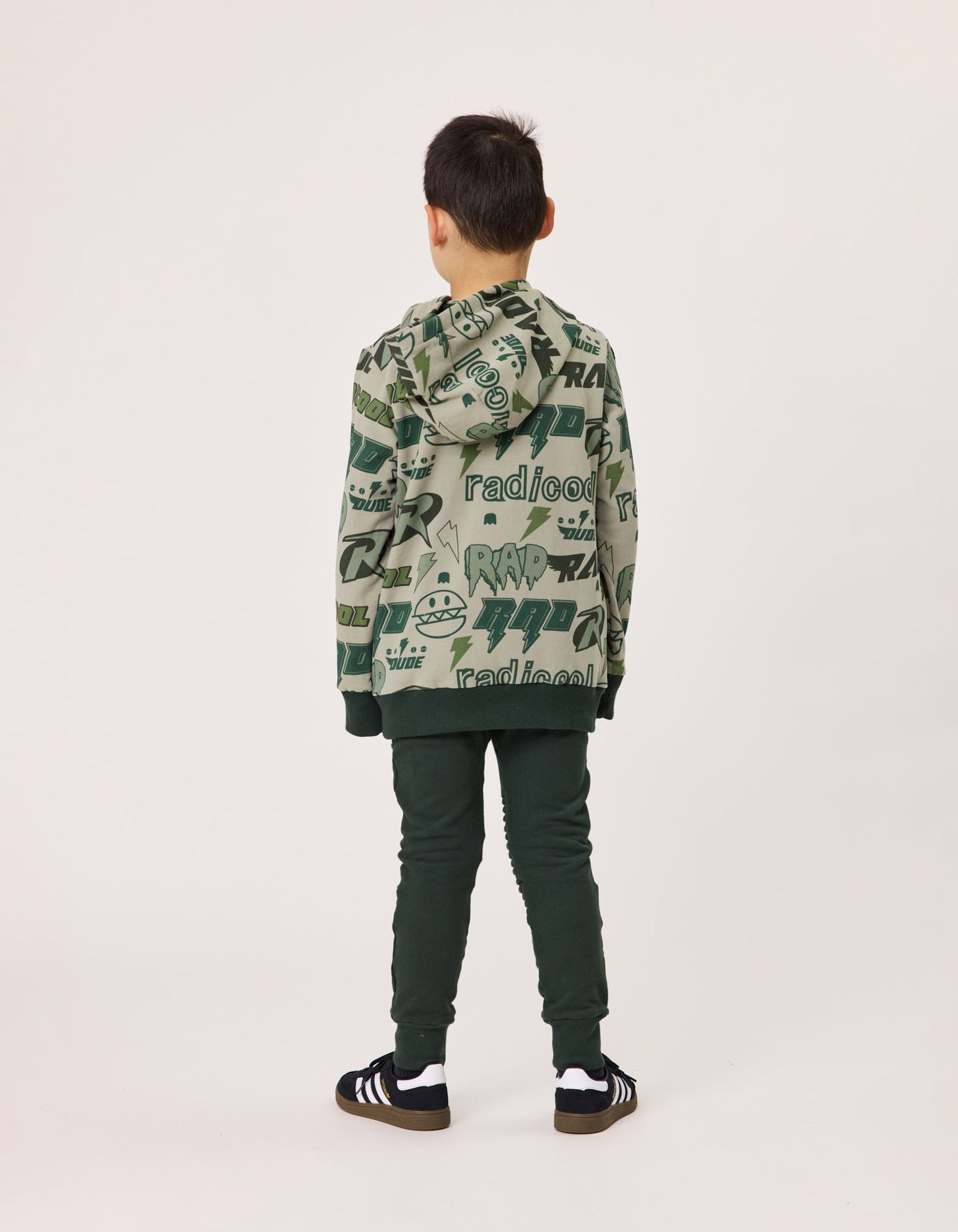 •  ‘Radicool Rulz’ yardage print in shades of green