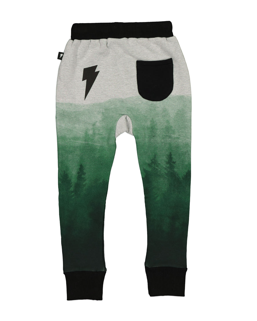 Brushed cotton / spandex river pant in grey marl with forest print. A simple, slim pant with a big statement print guaranteed to make your lil’ dude stand out from the crowd!