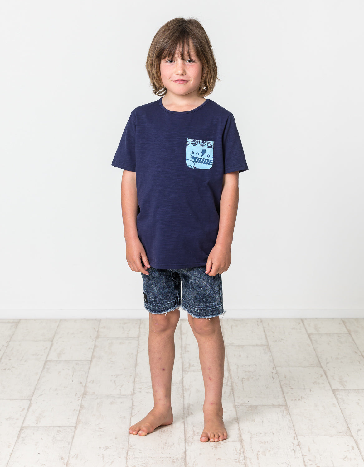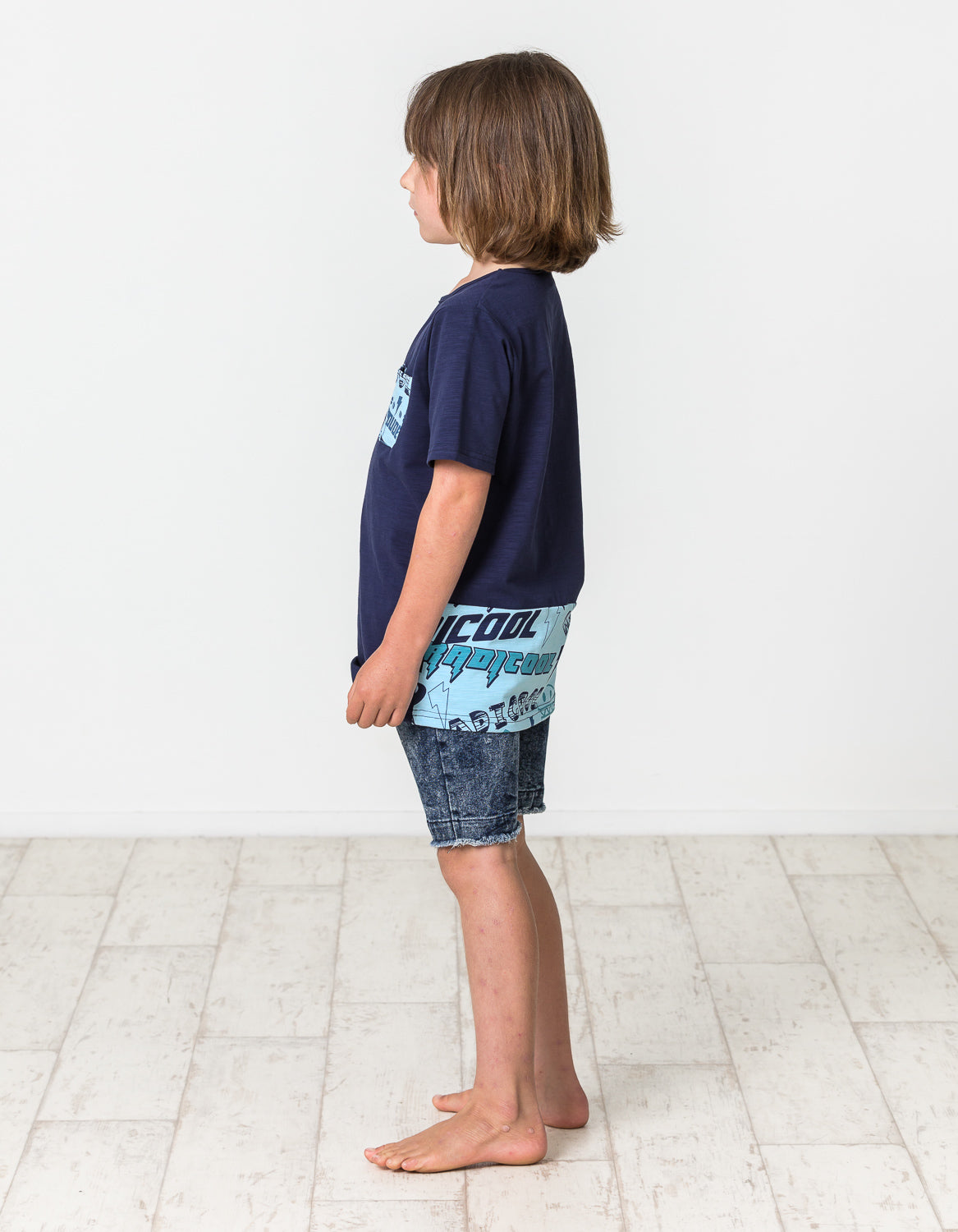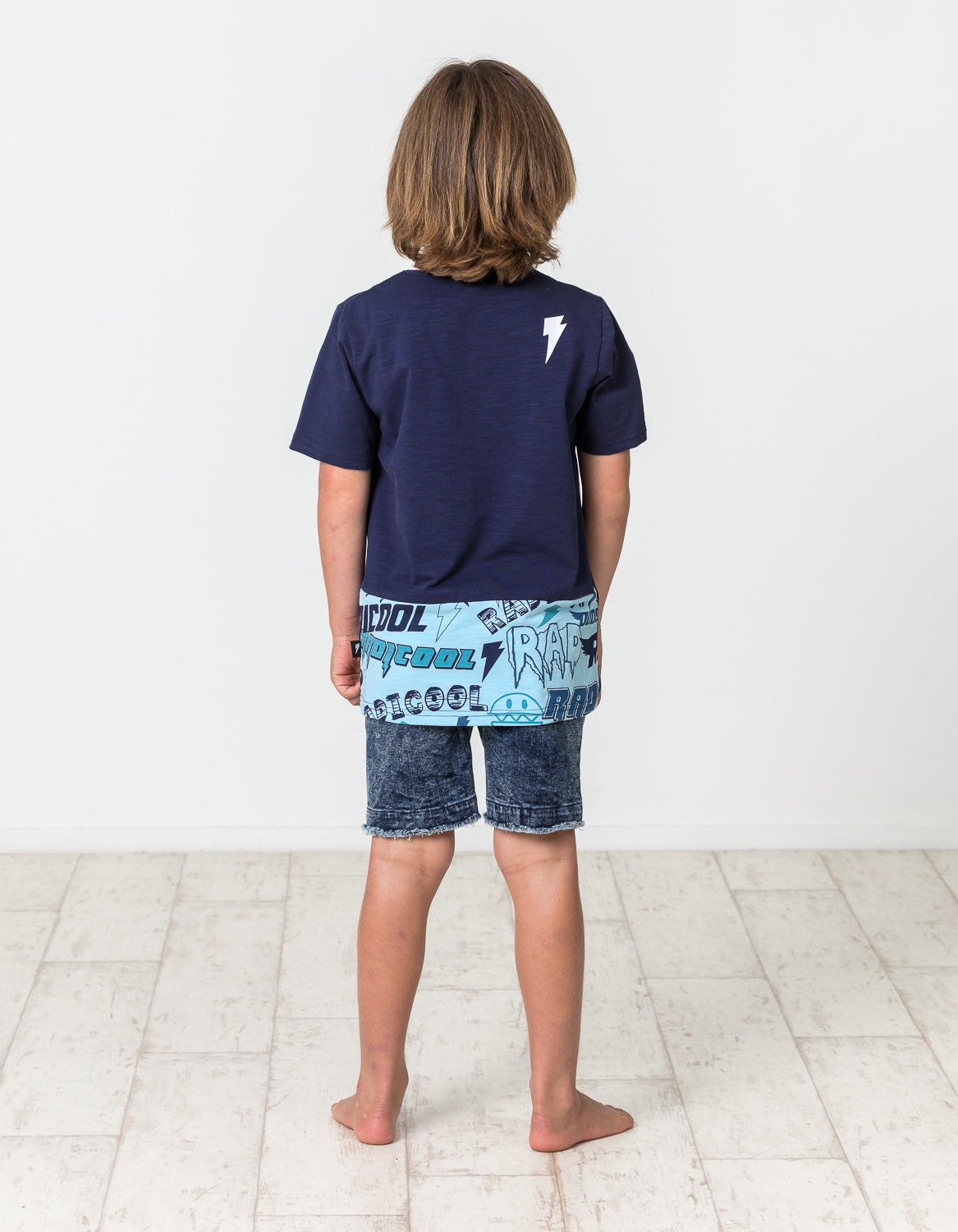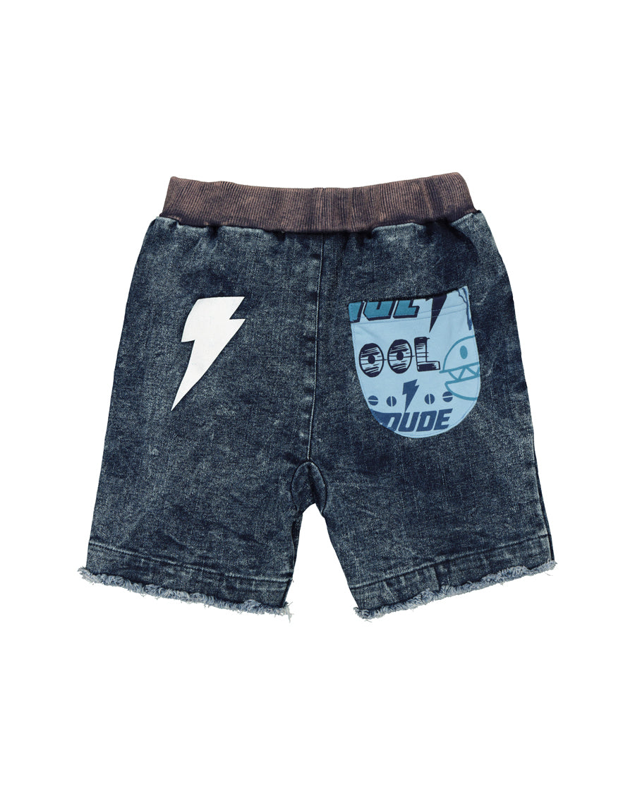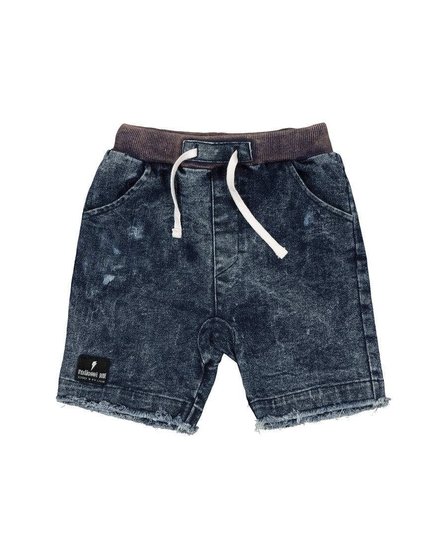 9 oz stretch acid wash blue denim short with Radicool repeat patch pocket & bolt print on reverse. A blue version of our signature denim shorts – & yes, you do need a pair in every colour!
